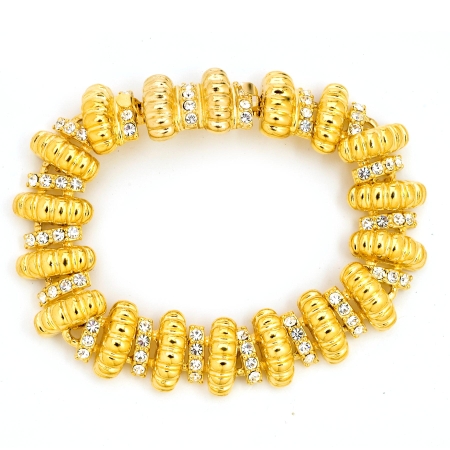 Jackies Signature Link Bracelet ($99.50) has the same luxuriously complex personality as the necklace and was one of Jackie's most often worn pieces• It has 16 distinct 24ct gold plated scalloped elements and carries 72 Swarovski crystals in between