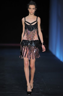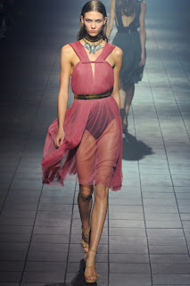 25. Spring/Summer 2012 Fashion Trend #25: Sheer clothing & Deep Cleavage: Nothing is left to the imagination. A sheer bolero in a gorgeous silk or organza works for me. A bather cover up, I know that's ironic, is acceptable. What do you think of sheer skirts? Not a classy look but for those who can apparently are wearing sheer clothing.This Lanvin dress leaves nothing to the imagination.